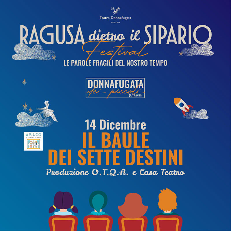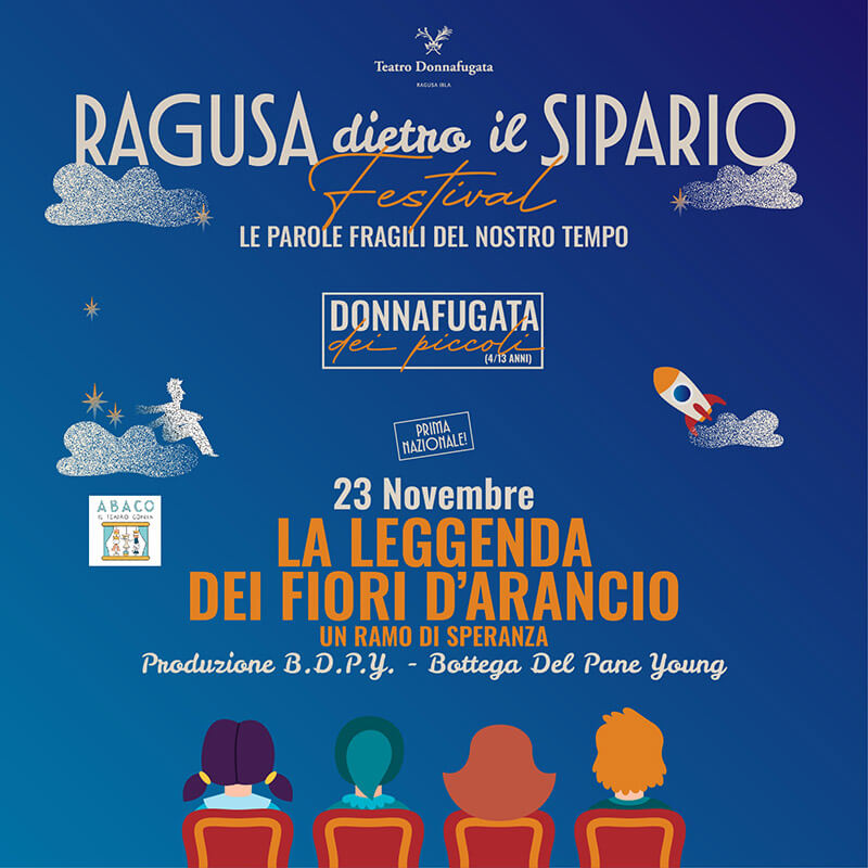 La quarta edizione del Festival Ragusa Dietro il Sipario e la nuovissima stagione teatrale Donnafugata dei Piccoli. Grandi avventure per cinque appuntamenti imperdibili. Un viaggio gioioso e fastastico. Info e prenotazioni 3342208186