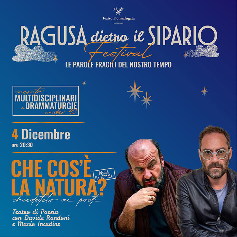 La quarta edizione del Festival Ragusa Dietro il Sipario e la nuovissima stagione teatrale targata Teatro Donnafugata. Grandi nomi, ospiti, appuntamenti imperdibili. Un viaggio colorato e intenso. Info e prenotazioni 3342208186